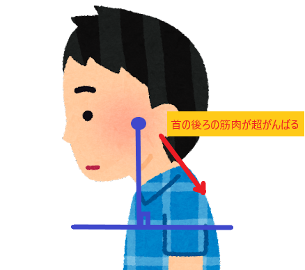 首の後ろ側の筋肉が地獄ほどがんばっています。