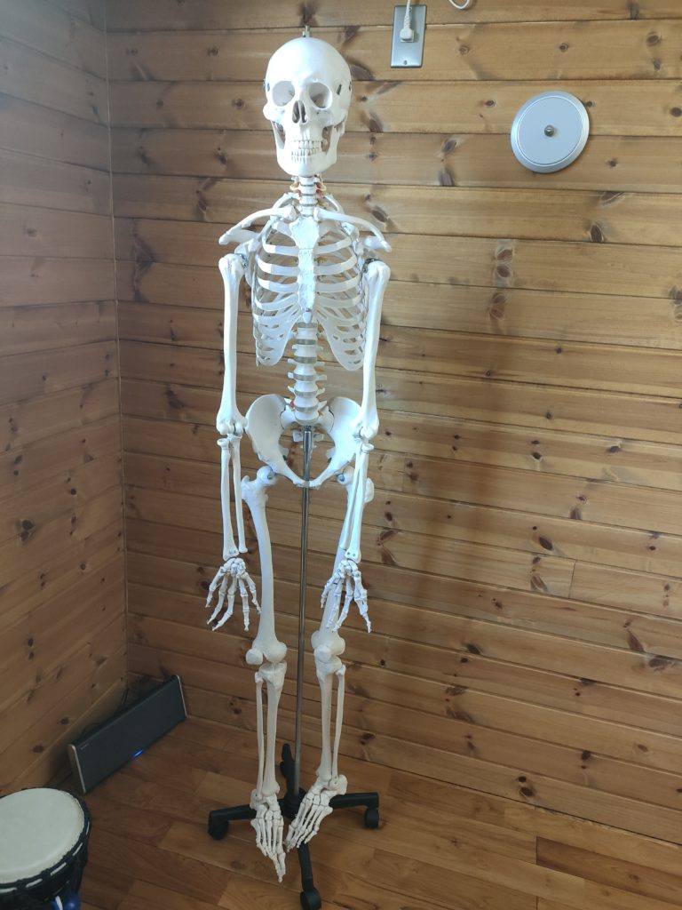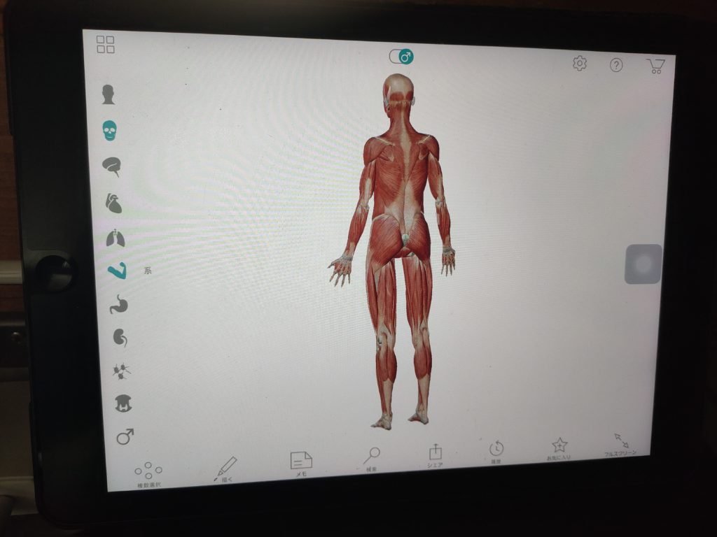 骨模型(やきそば君という名前)と、VISIBLE BODY®のアプリ「アトラス」は