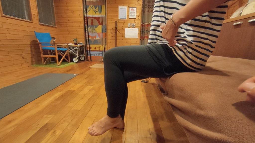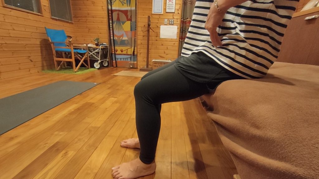 伸びている腸腰筋を縮めるイメージを持ちましょう。