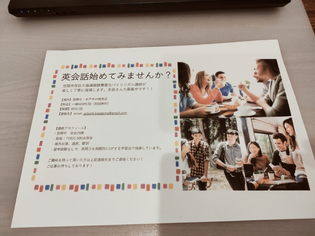 ヨネカワ治療院にいらっしゃる方が、英語の先生を始められました。